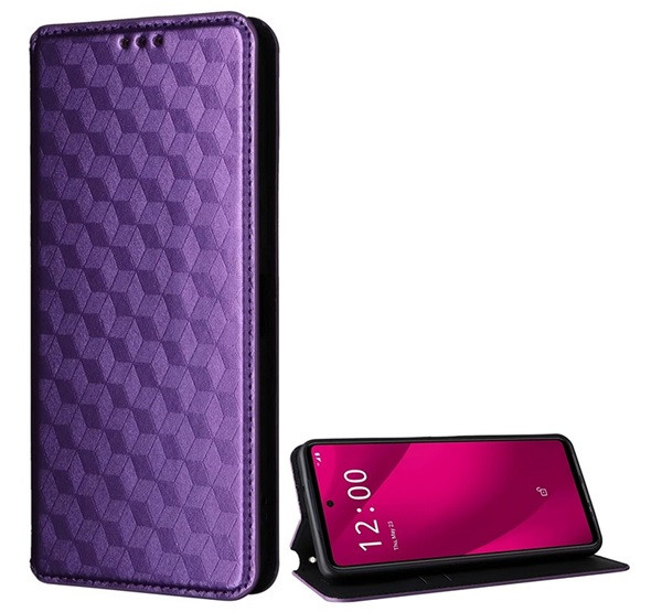 Tok álló, bőr hatású (FLIP, oldalra nyíló, asztali tartó, teljes 3D rombusz, prémium) LILA
