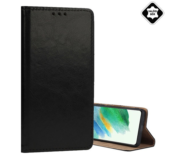 Tok álló, valódi bőr (FLIP, oldalra nyíló, asztali tartó) FEKETE