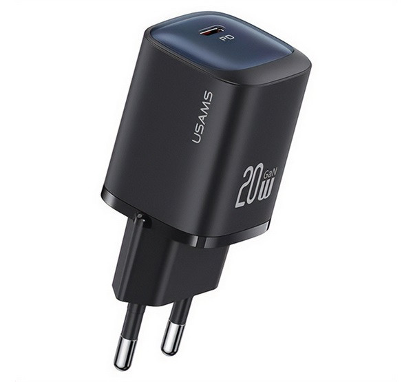 USAMS CC248 hálózati töltő Type-C aljzat (20W, GaN, PD gyorstöltő) FEKETE