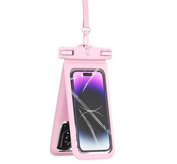 USAMS vízhatlan/vízálló tok, AQUA (univerzális, IP68, nyakba akasztható, kétrekeszes kialakítás, 7" méret) RÓZSASZÍN