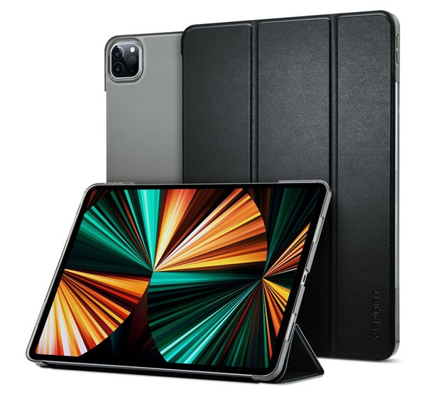 SPIGEN SMART FOLD tok álló, bőr hatású (aktív FLIP, oldalra nyíló, TRIFOLD, asztali tartó) FEKETE