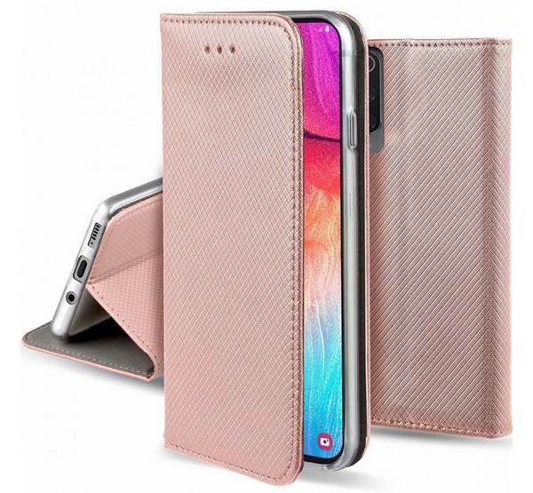 Tok álló, bőr hatású (FLIP, oldalra nyíló, asztali tartó, rombusz) ROZÉARANY