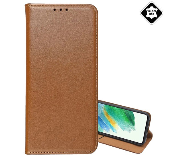 Tok álló, valódi bőr (FLIP, oldalra nyíló, asztali tartó) VILÁGOSBARNA