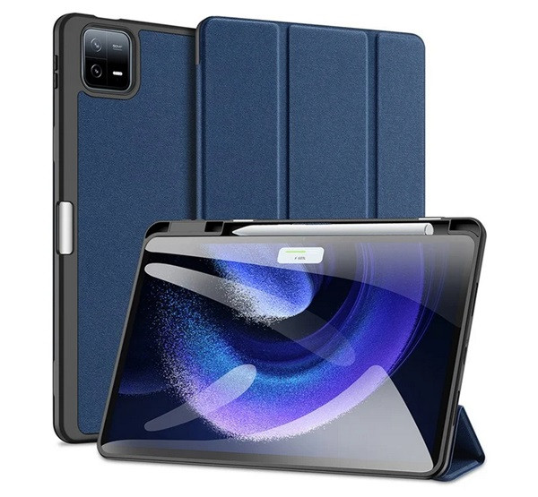 DUX DUCIS DOMO tok álló, bőr hatású (aktív FLIP, oldalra nyíló, TRIFOLD, asztali tartó, ceruza tartó) SÖTÉTKÉK