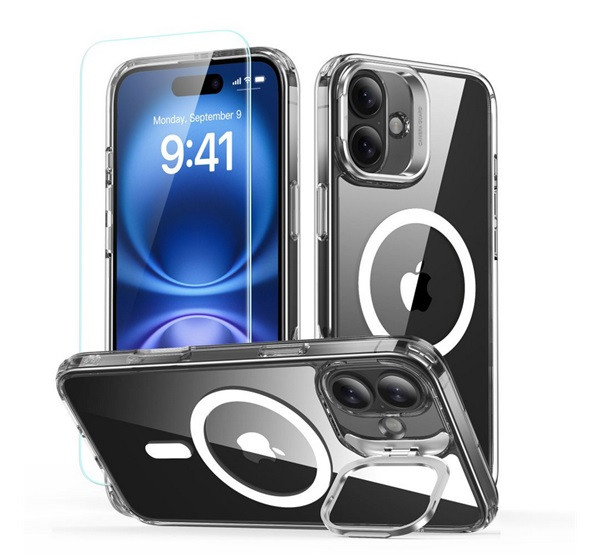 ESR CLASSIC HYBRID szilikon telefonvédő (ütésállóság, légpárnás sarok, kitámasztó, MagSafe + képernyővédő üveg) ÁTLÁTSZÓ