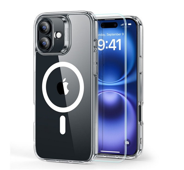 ESR HYBRID HALOLOCK szilikon telefonvédő (ütésállóság, légpárnás sarok, MagSafe + képernyővédő üveg) ÁTLÁTSZÓ