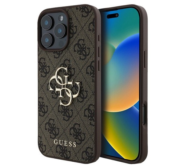 GUESS 4G BIG LOGO szilikon telefonvédő (ütésállóság, bőr hatású hátlap) SÖTÉTBARNA