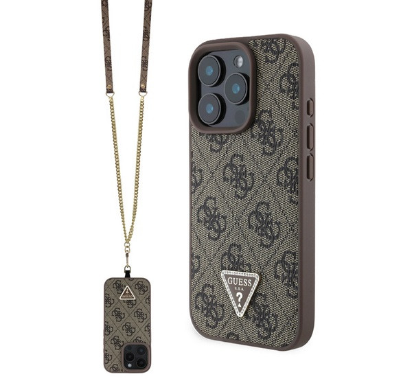 GUESS CROSSBODY szilikon telefonvédő (ütésállóság, bőr hatású hátlap + vállpánt) SÖTÉTBARNA