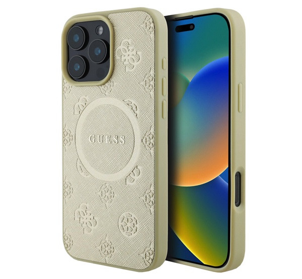 GUESS SAFFIANO PEONY CLASSIC LOGO szilikon telefonvédő (ütésállóság, bőr hatású hátlap, MagSafe) ARANY