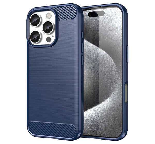Szilikon telefonvédő (ütésállóság, légpárnás sarok, szálcsiszolt, karbon minta) SÖTÉTKÉK