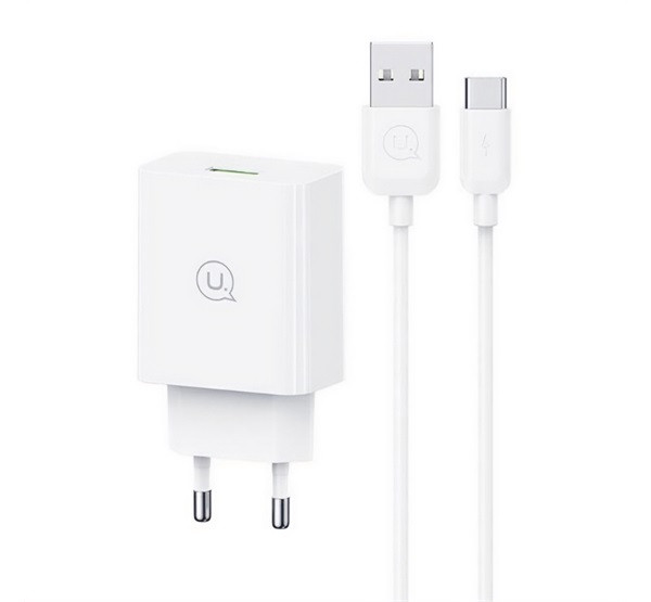 USAMS SC hálózati töltő USB aljzat (18W, PD gyorstöltő 3.0 + Type-C kábel) FEHÉR