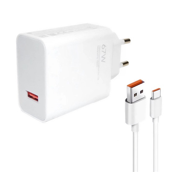 XIAOMI hálózati töltő USB aljzat (67W, gyorstöltő + Type-C kábel) FEHÉR