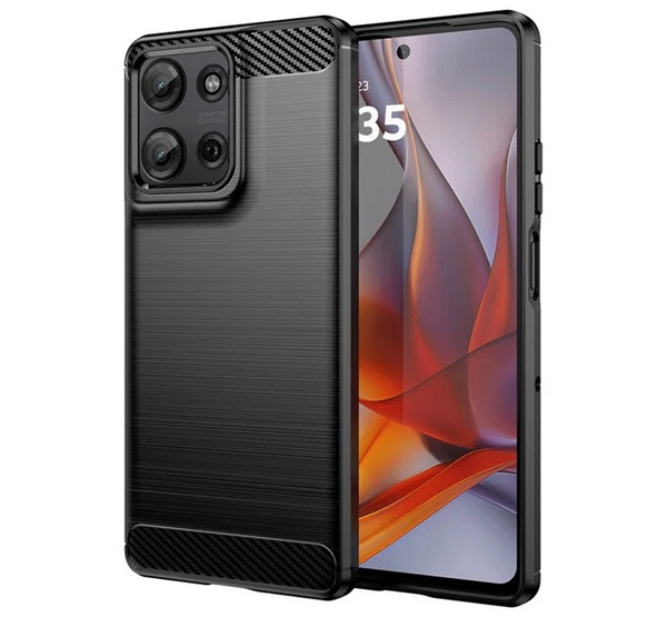 Szilikon telefonvédő (ütésállóság, légpárnás sarok, szálcsiszolt, karbon minta) FEKETE