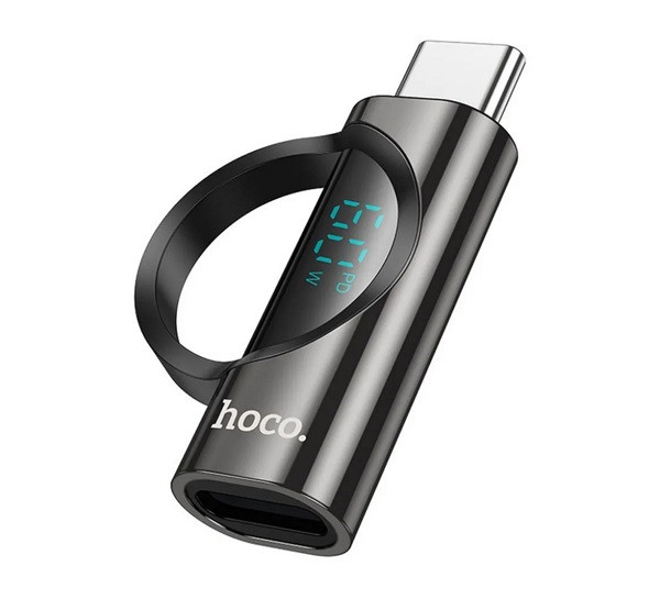 HOCO UA32A adapter (Lightning aljzat - Type-C, adatátvitel és töltés, LED kijelző) FEKETE