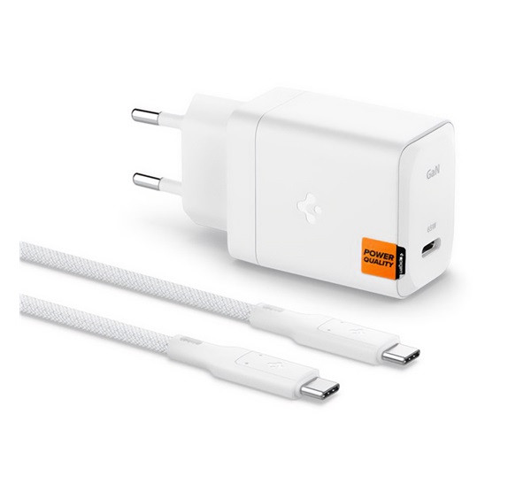 SPIGEN ARCSTATION PRO hálózati töltő Type-C aljzat (65W, GaN, PD gyorstöltő 3.0 + Type-C kábel) FEHÉR
