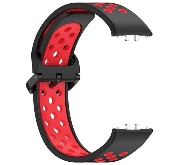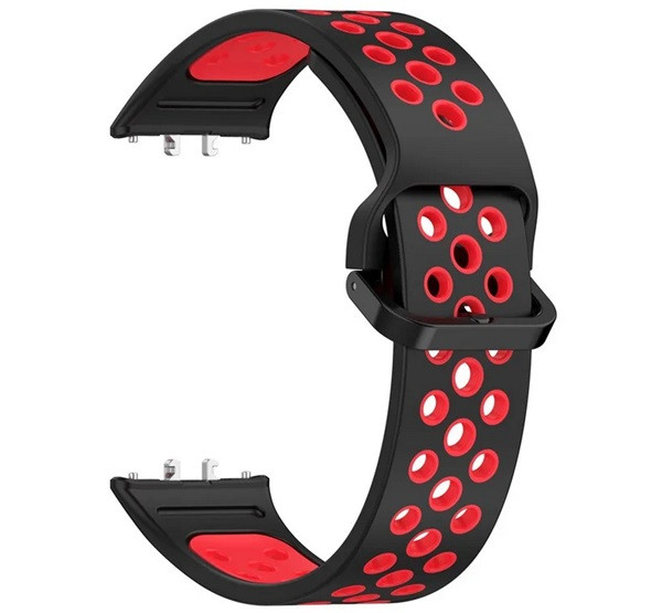 Pótszíj (egyedi méret, szilikon, lyukacsos, légáteresztő) FEKETE/PIROS