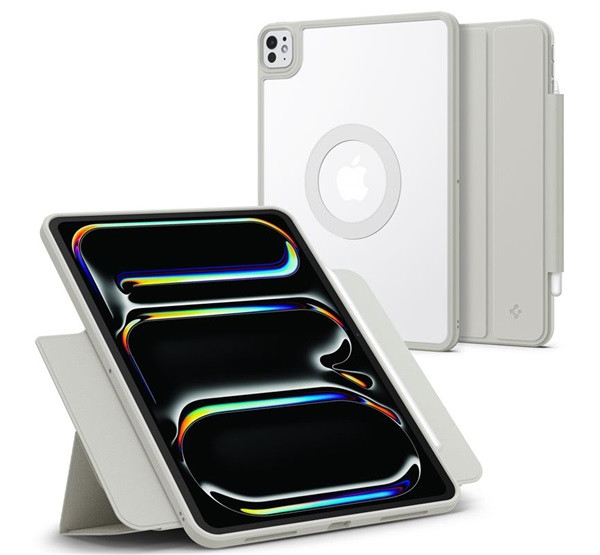 SPIGEN AIR SKIN PRO ONETAP tok álló, ECO bőr hatású (aktív FLIP, oldalra nyíló, TRIFOLD, asztali tartó, mágneses) SZÜRKE