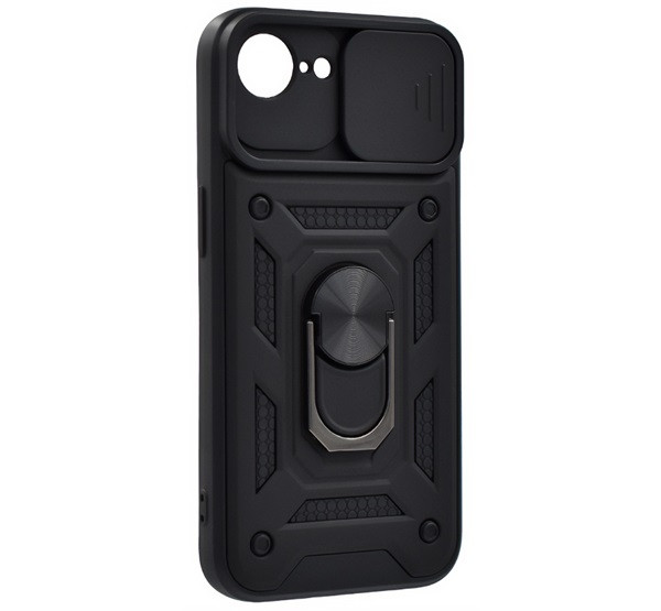 Defender szilikon telefonvédő (ütésállóság, tartógyűrű, kameravédő) FEKETE