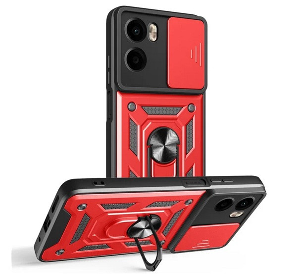 Defender szilikon telefonvédő (ütésállóság, tartógyűrű, kameravédő) PIROS