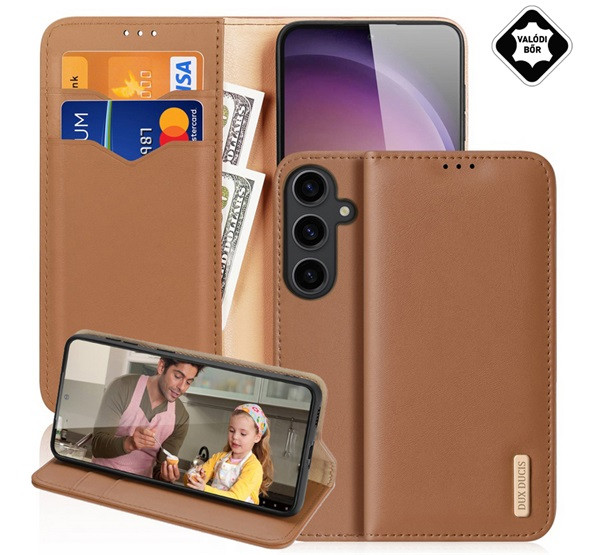 DUX DUCIS HIVO tok álló, valódi bőr (FLIP, oldalra nyíló, asztali tartó, kártyazseb, RFID) BARNA