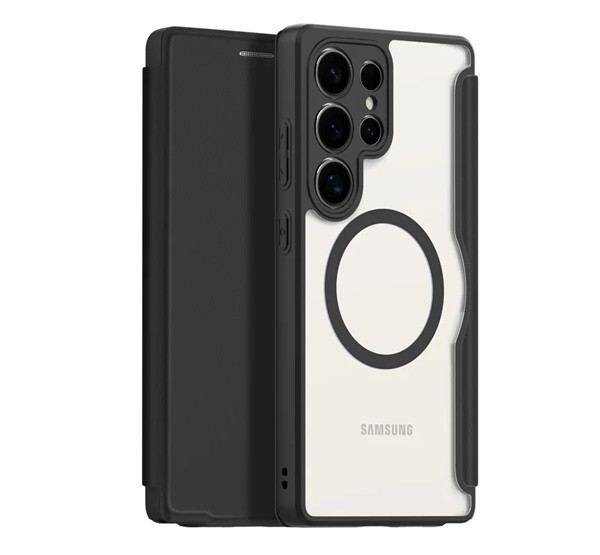 DUX DUCIS SKIN X PRO tok álló, bőr hatású (FLIP, oldalra nyíló, RFID, MagSafe) FEKETE