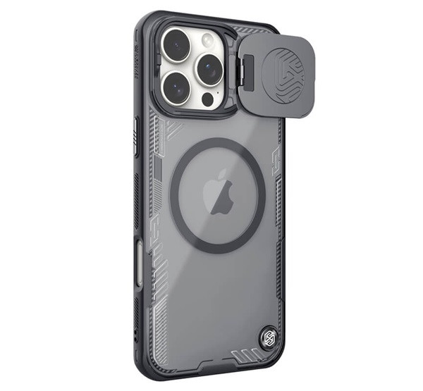 NILLKIN ICEBLADE PROP szilikon telefonvédő (ütésállóság, kameravédő, kitámasztó, MagSafe) FEKETE