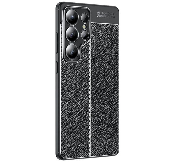 Szilikon telefonvédő (ütésállóság, bőr hatású, varrás minta) FEKETE