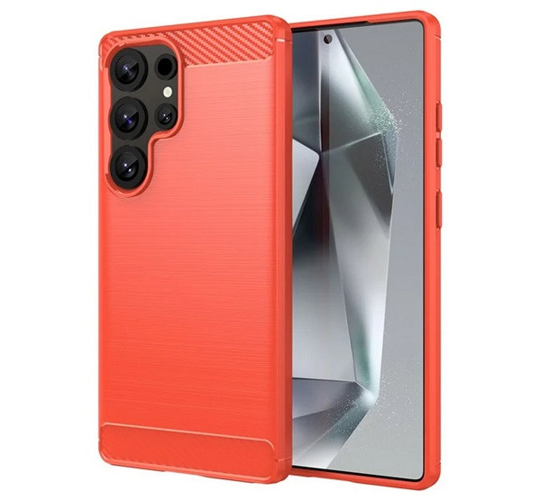 Szilikon telefonvédő (ütésállóság, légpárnás sarok, szálcsiszolt, karbon minta) PIROS