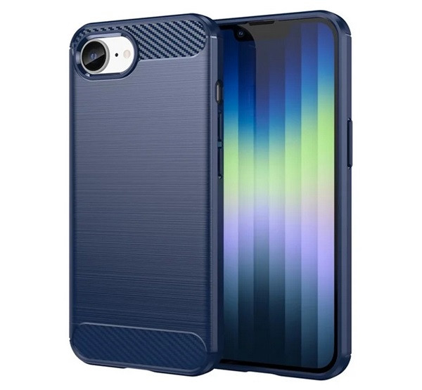 Szilikon telefonvédő (ütésállóság, légpárnás sarok, szálcsiszolt, karbon minta) SÖTÉTKÉK
