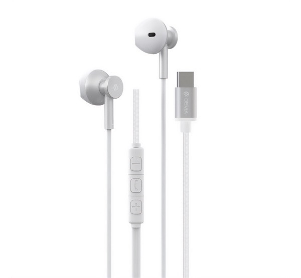 DEVIA SMART M2 fülhallgató SZTEREO (Type-C, mikrofon, felvevő gomb) EZÜST
