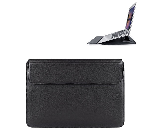 DEVIA tok fekvő, bőr hatású LAPTOP/NOTEBOOK/TABLET (univerzális, asztali tartó, ultravékony, 13.3" méret) FEKETE