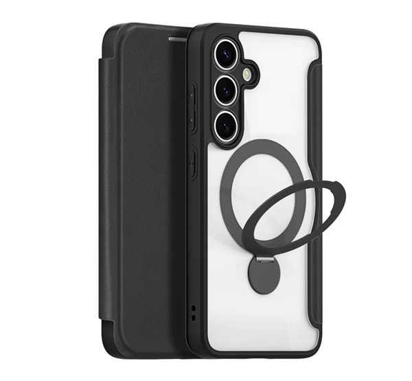 DUX DUCIS SKIN X PRO tok álló, bőr hatású (FLIP, oldalra nyíló, RFID, kitámasztó, MagSafe) FEKETE