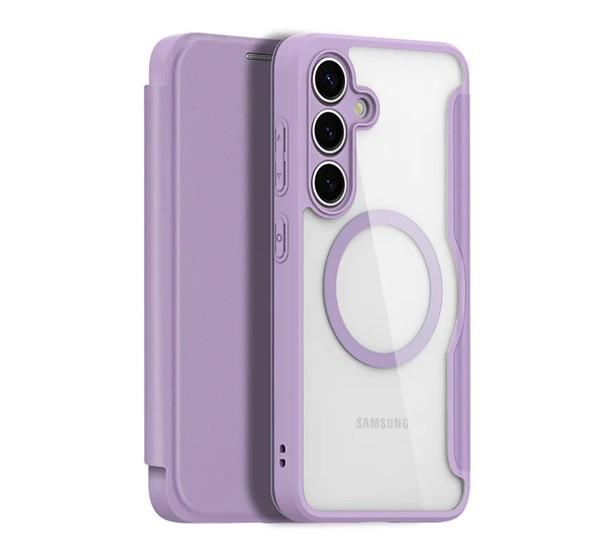 DUX DUCIS SKIN X PRO tok álló, bőr hatású (FLIP, oldalra nyíló, RFID, MagSafe) LILA