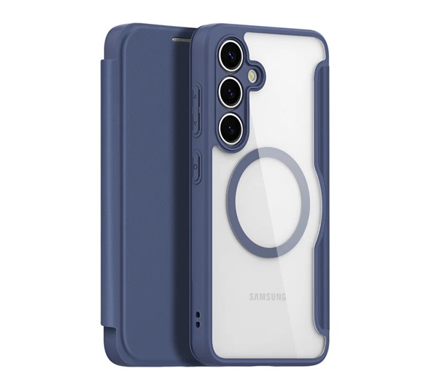DUX DUCIS SKIN X PRO tok álló, bőr hatású (FLIP, oldalra nyíló, RFID, MagSafe) SÖTÉTKÉK