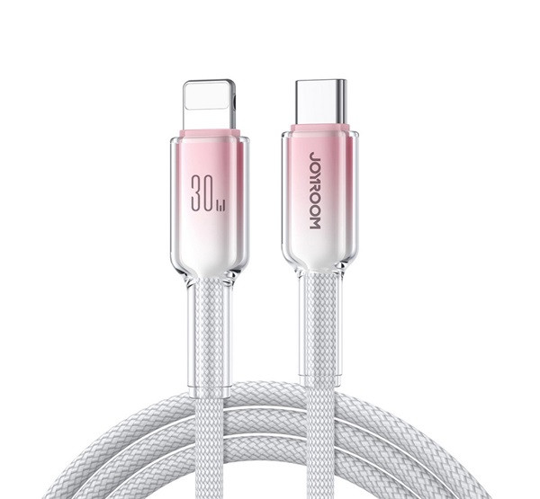 JOYROOM CRYSTAL-CLEAR adatkábel (Type-C - lightning, 3A, gyorstöltő, cipőfűző, 120cm) FEHÉR