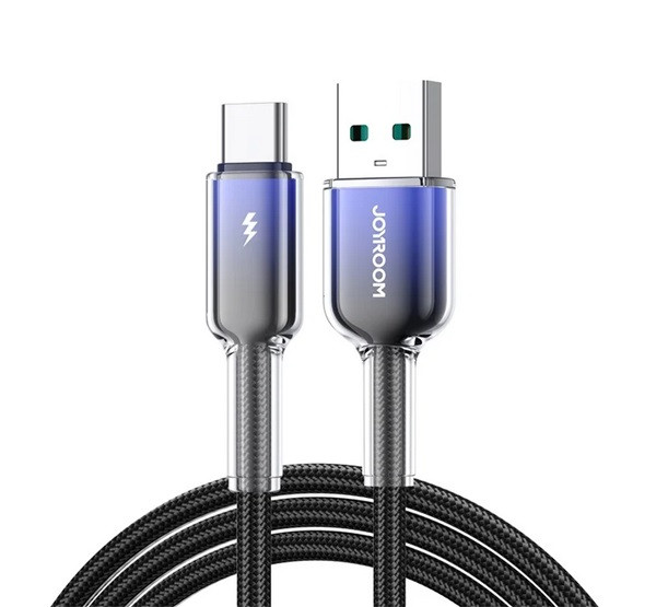 JOYROOM CRYSTAL-CLEAR adatkábel (USB - Type-C, 3A, gyorstöltő, cipőfűző, 120cm) FEKETE
