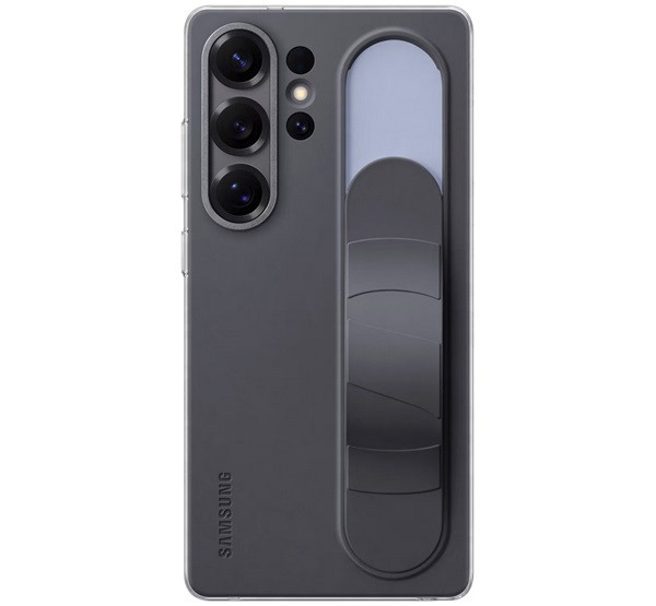 SAMSUNG szilikon telefonvédő (matt, beépített szíj, kitámasztó) FEKETE