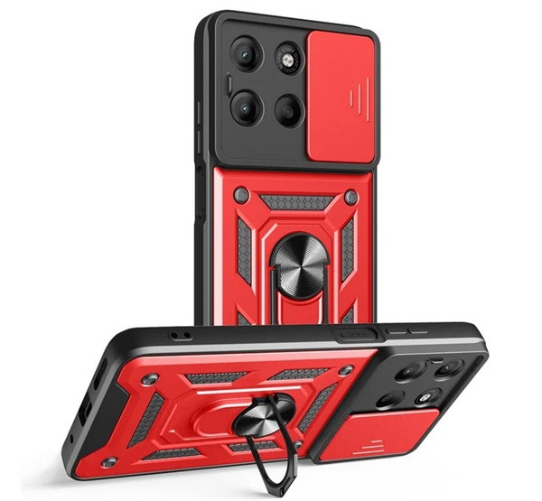 Defender szilikon telefonvédő (ütésállóság, tartógyűrű, kameravédő) PIROS