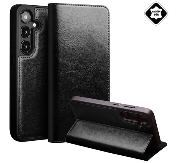 QIALINO tok álló, valódi bőr (FLIP, oldalra nyíló, asztali tartó) FEKETE