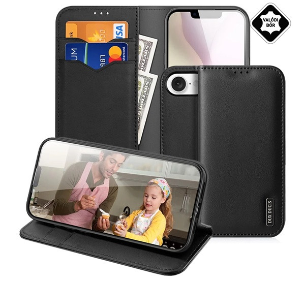 DUX DUCIS HIVO tok álló, valódi bőr (FLIP, oldalra nyíló, asztali tartó, kártyazseb, RFID) FEKETE