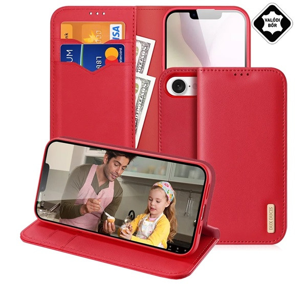 DUX DUCIS HIVO tok álló, valódi bőr (FLIP, oldalra nyíló, asztali tartó, kártyazseb, RFID) PIROS