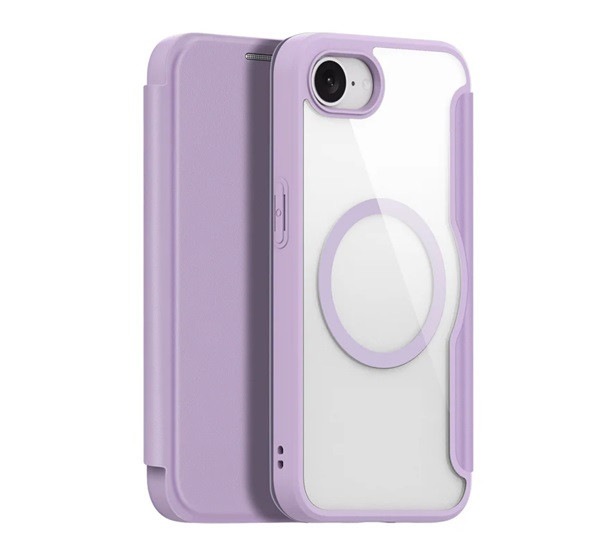 DUX DUCIS SKIN X PRO tok álló, bőr hatású (FLIP, oldalra nyíló, RFID, MagSafe) LILA