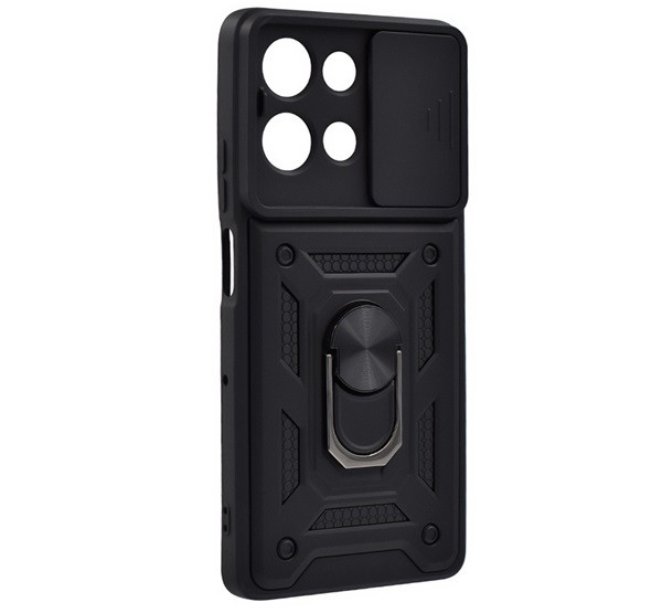 Defender szilikon telefonvédő (ütésállóság, tartógyűrű, kameravédő) FEKETE