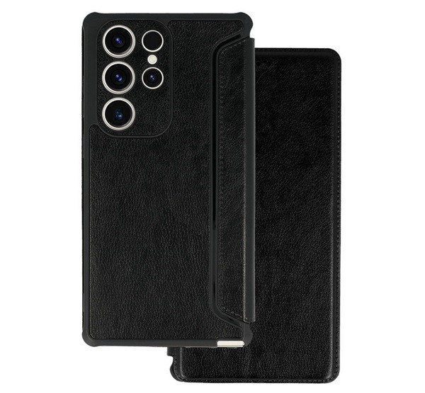 Tok álló, bőr hatású (FLIP, oldalra nyíló, ütésállóság, légpárnás sarok, kameravédő) FEKETE