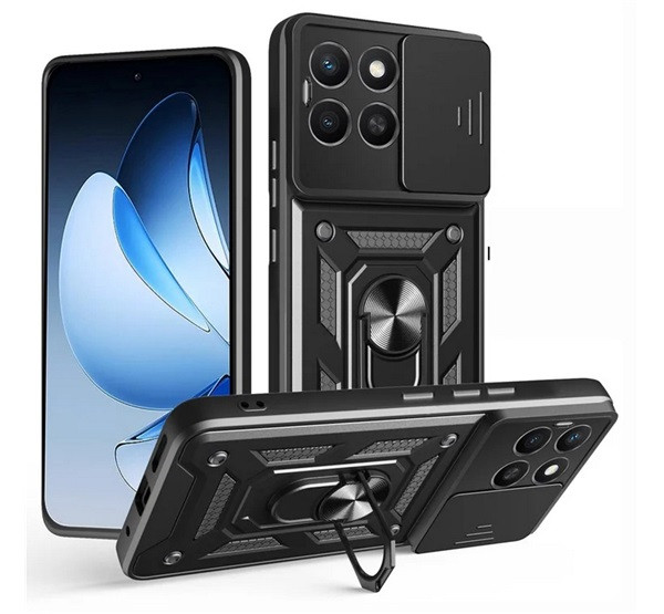 Defender szilikon telefonvédő (ütésállóság, tartógyűrű, kameravédő) FEKETE