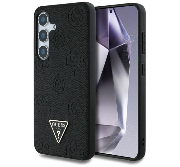 GUESS GRAINED HOT STAMP PEONY PATTERN szilikon telefonvédő (ütésállóság, bőr hatású hátlap, MagSafe) FEKETE