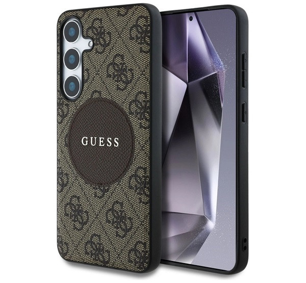 GUESS 4G ROUND PATCH CLASSIC LOGO szilikon telefonvédő (ütésállóság, textil hátlap, MagSafe) VILÁGOSBARNA