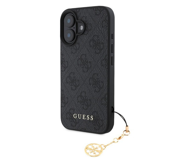 GUESS 4G CHARMS műanyag telefonvédő (textil hátlap, telefondísz) SÖTÉTSZÜRKE