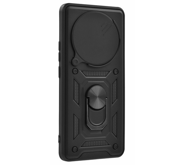 Defender szilikon telefonvédő (ütésállóság, tartógyűrű, kameravédő) FEKETE