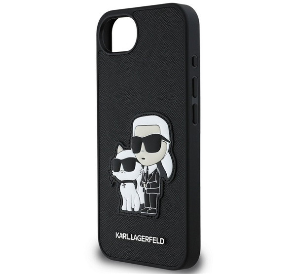KARL LAGERFELD PU SAFFIANO KARL AND CHOUPETTE szilikon telefonvédő (ütésállóság, bőr hatású hátlap, 3D) FEKETE